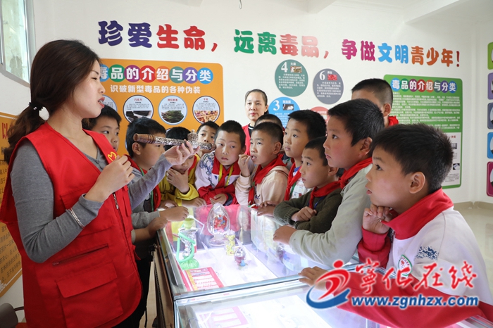 11月13日,寧化縣泉上中心小學50多名師生走進林則徐禁毒宣教室,參觀禁毒展覽室陳列的仿真毒品,聆聽志愿者的禁毒講解,觀看禁毒視頻。自今年2月全省禁毒重點整治工作視頻推進會召開后,寧化各鄉(xiāng)鎮(zhèn)加大禁毒宣傳的力度,紛紛進校園、進社區(qū)、進機關建立林則徐禁毒宣教室,全面開展毒品預防教育。(賴全平 廖傳斌 攝影報道)