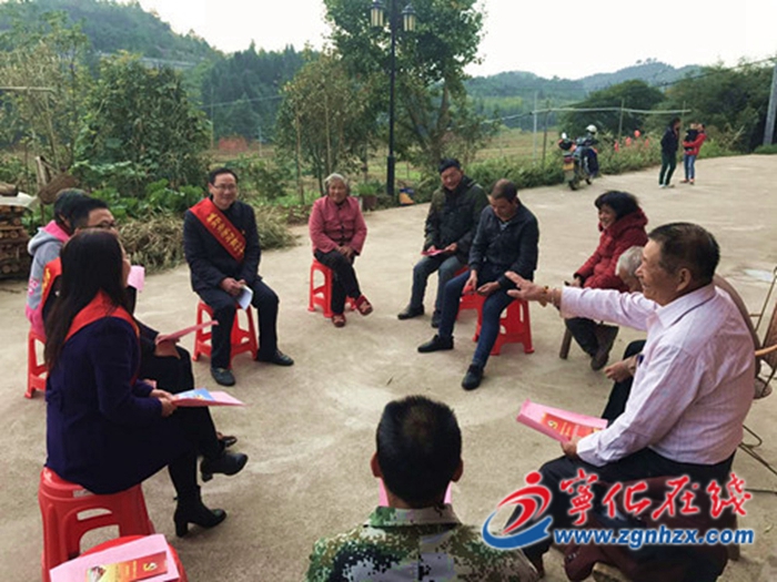 12月12日,寧化縣城郊鎮馬元村10多名村民圍坐在一起,聆聽本村的老黨員潘用權宣講黨的惠民政策和紅色故事。