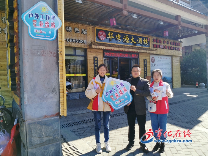 為方便戶外工作者,縣葛藤凹社工中心還聯合客家國際大酒店、中國電信、中國郵政、范范西點、曦瓜大紅袍等39個愛心商家,在城區設立了10個“戶外工作者補給站”,免費為有需要的人提供熱水、姜茶和急用藥品。