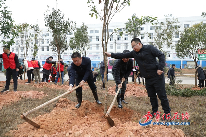 一到植樹現場,余建地一行和大家一道,興致勃勃地拿起鋤頭等勞動工具忙碌起來。大家分工協作,整穴、扶苗、填土、踩實、澆水……每道工序都做得認真細致,植樹現場處處是火熱的身影。經過大家辛勤勞作,共種下香樟、桂花、紫薇等樹苗420余株。一棵棵新栽下的苗木英姿勃發、迎風挺立,孕育著綠色發展的新希望。