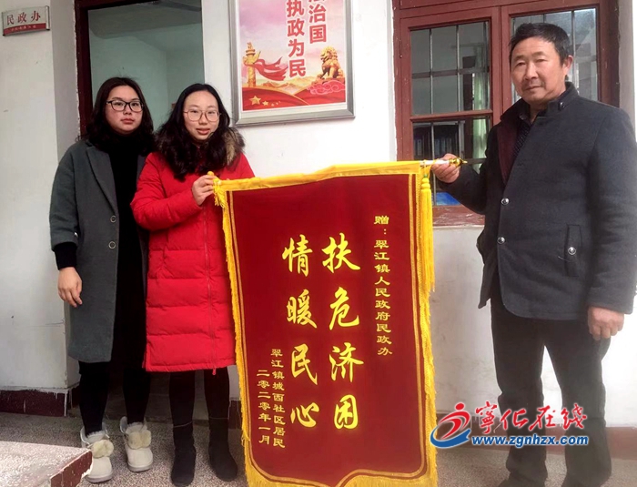 近日,寧化縣翠江鎮城西社區居民老施給翠江鎮民政辦送來了一面印有“扶危濟困、情暖民心”的錦旗,代表他患病的女兒施海珍對翠江鎮民政辦的關心與幫助表示衷心的感謝。