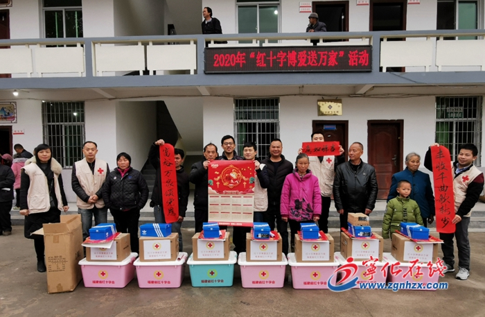 在水茜鎮舉行的2020年“紅十字博愛送萬家”活動啟動儀式上,縣紅十字會為該鎮23戶貧困戶發放“博愛年貨箱”、電飯煲,并送上運動鞋、春聯、掛歷等慰問品。全縣共發放30份由省紅十字會捐助的 “博愛年貨箱”和電飯煲。