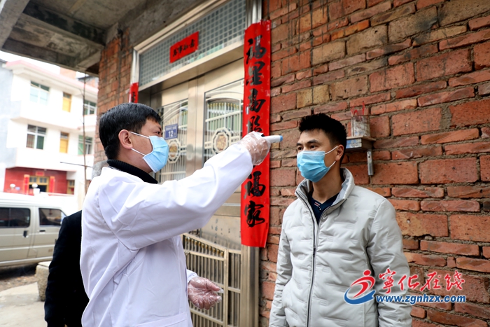 2月2日,寧化縣曹坊鎮衛生院院長徐熙仁帶隊,先后入戶走訪10余家,為轄區村民測量體溫,排查返鄉重點人員有無發熱等癥狀,并勸說其居家隔離14天。