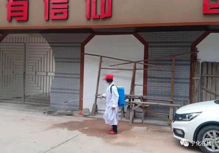 “鎮上的人口多,疫情防控必要的消毒更不能少。”想到這,剛剛入戶完回到家的她沒有坐下休息,而是又馬不停蹄地穿上白大褂,背上了噴霧器,行走在鎮上的大街小巷。