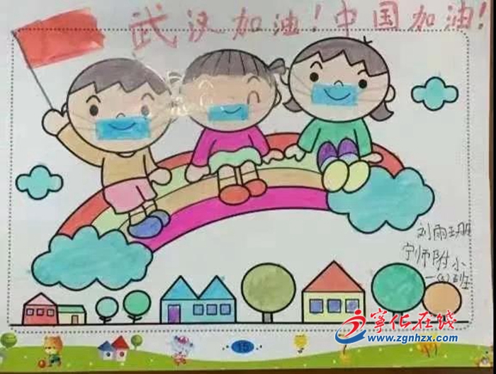 寧化:小學生創作防疫繪畫作品為武漢加油