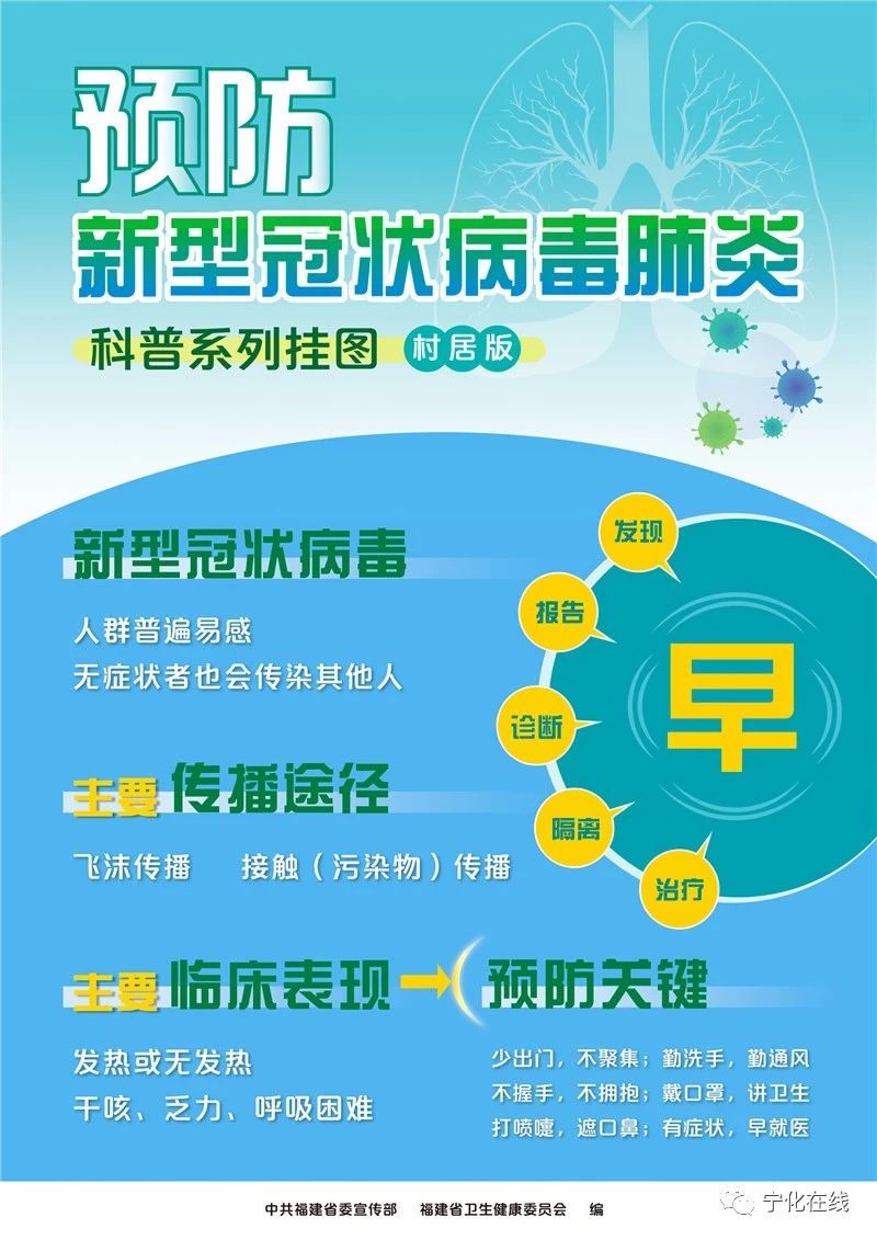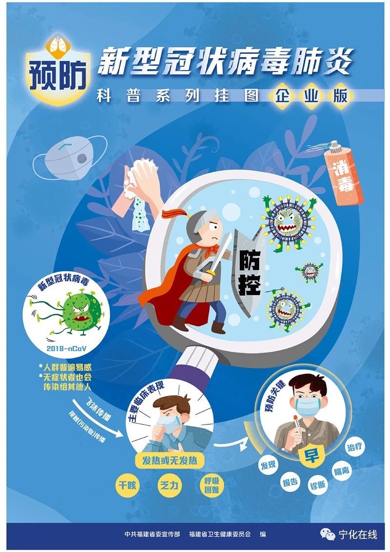 ? ?近日,中共福建省委宣傳部、省衛(wèi)生健康委員會(huì)聯(lián)合編制的《預(yù)防新型冠狀病毒肺炎科普系列掛圖》由福建科學(xué)技術(shù)出版社出版,供各地各部門、各企事業(yè)單位免費(fèi)下載推送、印刷使用。