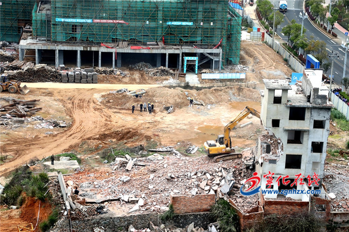 3月16日,寧化城東第二小學項目建設工地上,工人們正忙于砌墻,清除屋頂模板,拆除操場上的廢棄建筑,現場一片繁忙景象。