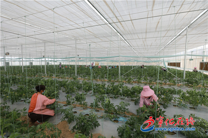 眼下,寧化縣中沙鄉新綠金智能溫控蔬菜基地,工人正在為西紅柿苗掛藤。目前正值西紅柿種植管理期,基地雇用60多名本地村民,其中10戶貧困戶。基地通過吸納安置農村剩余勞動力和貧困群眾在家門口就業,帶動他們增收脫貧。