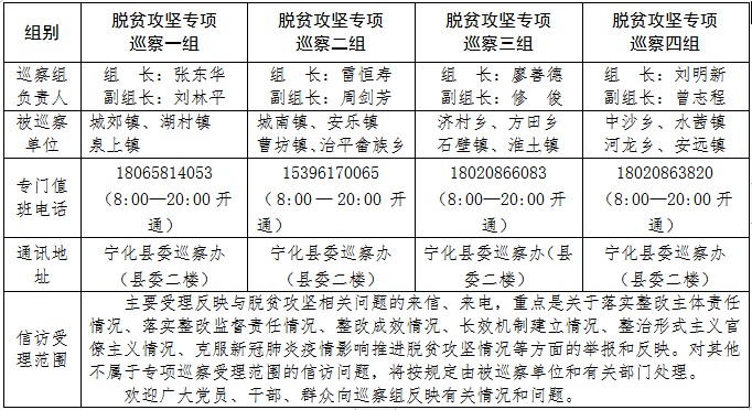 目前,寧化縣委巡察組已通過“翠城清風”微信公眾號及寧化在線發布巡察公告,公布巡察組聯系電話、通訊地址等,進一步暢通巡察監督渠道。