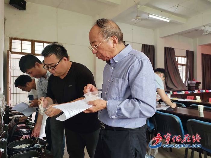 中科院院士、省農(nóng)科院研究員謝華安帶領(lǐng)由育種單位、管理機(jī)構(gòu)、種子企業(yè)、大米加工企業(yè)等單位的14名人員組成的鑒評組,通過現(xiàn)場品嘗、打分等方式,對河龍貢米后備品種品質(zhì)進(jìn)行現(xiàn)場鑒評。?