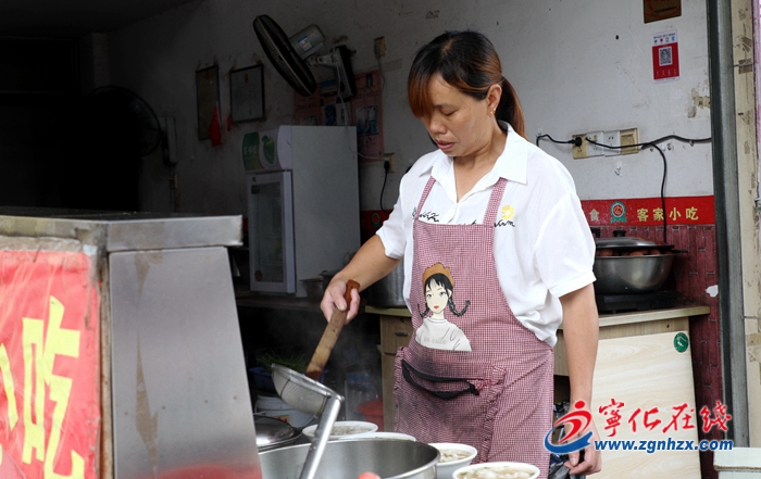 6月11日,寧化縣中沙鄉(xiāng)石門村村民夏金穩(wěn)在照料完豬仔后,轉(zhuǎn)身來到位于中沙鄉(xiāng)街上的清香小吃店,給妻子吳清香幫廚,里里外外照顧客人,兩人忙得不亦樂乎。