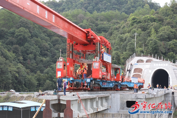 在寧化水茜鎮(zhèn)黃沙潭蓮花山隧道出口,工人們正緊張忙碌著。只見一根巨型梁片,在龍門吊等設(shè)備的操控下,緩緩移動(dòng),二十幾分鐘后,梁片嵌進(jìn)了兩端橋墩的槽位,稍作調(diào)整后,這塊梁片穩(wěn)穩(wěn)地架設(shè)在橋墩上。