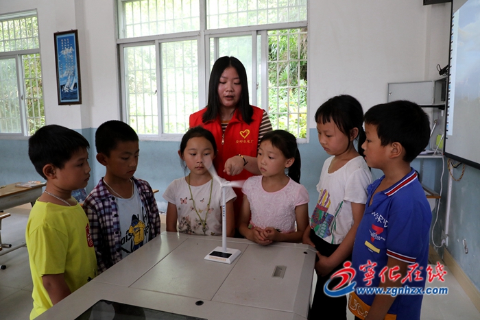 華電(寧化)新能源有限公司志愿者走進下坪小學教室、食堂及教師辦公室,詳細了解師生的教學和生活環境,并與孩子們一起玩游戲,為孩子們開展風電科普講座,深受師生歡迎。