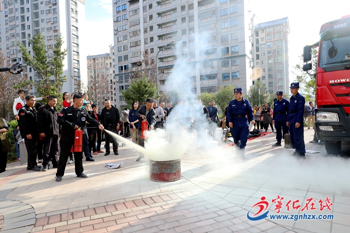 活動(dòng)現(xiàn)場(chǎng),消防指戰(zhàn)員向群眾展示了避火服、毀鎖器、熱成像儀等消防器材裝備,具體介紹各種裝備的功能用途及使用方法。緊接著,消防指戰(zhàn)員詳細(xì)講解和演示了滅火器的正確使用方法,在場(chǎng)的居民在消防指戰(zhàn)員的引導(dǎo)下,有序地按照滅火的步驟和方法,將燃起的火堆迅速撲滅。