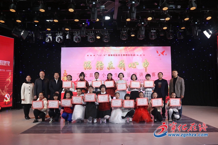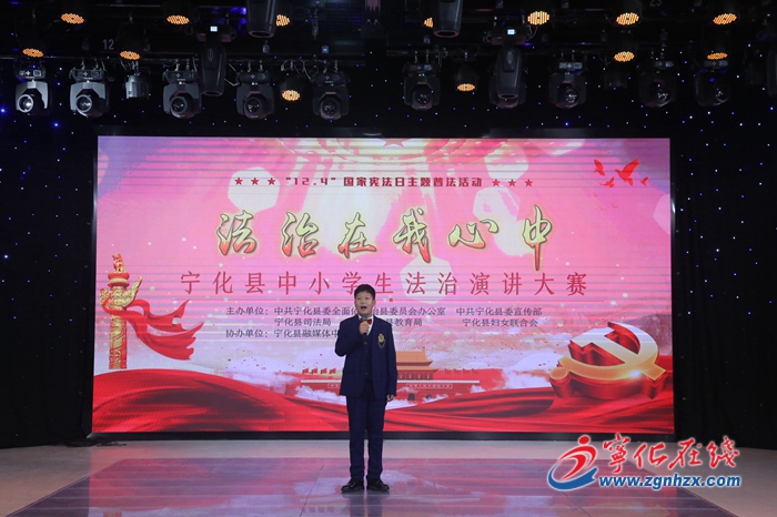 12月4日,寧化縣委全面依法治縣委員會辦公室、縣委宣傳部、縣司法局、縣教育局、縣婦聯(lián)等部門聯(lián)合舉辦全縣中小學生“法治在我心中” 演講比賽。副縣長、縣公安局局長郭志銘為獲獎選手頒獎。