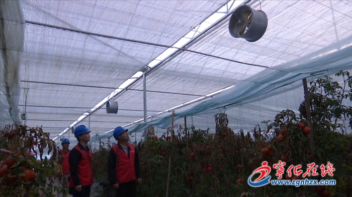 在中沙鄉新綠金蔬菜種植基地,寧化供電公司黨員服務隊對蔬菜基地供電設備進行細致維護。