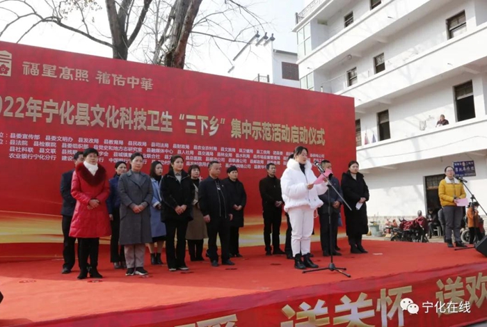 1月13日,2022年寧化縣文化科技衛生“三下鄉”集中示范活動啟動儀式在淮土鎮舉行。此次活動由縣委宣傳部、縣委文明辦、縣發改局等15家單位主辦,縣法院、縣委組織部、縣融媒體中心等33家單位聯辦。副縣長周美華參加啟動儀式。