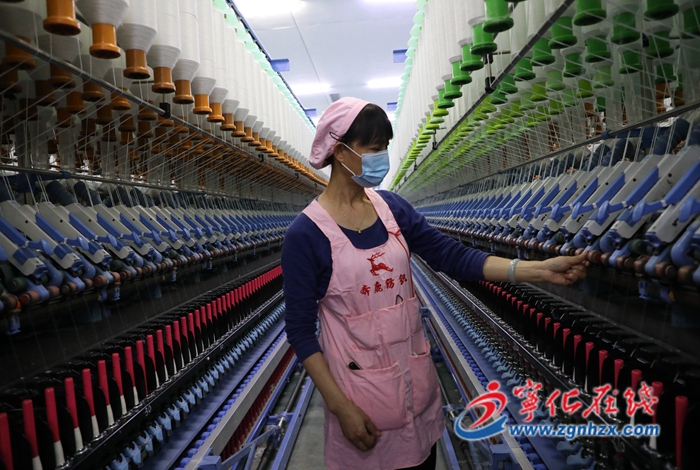 公司自2013年成立以來,已投資8億元,建設(shè)年產(chǎn)8萬枚紗錠紡紗及年產(chǎn)4.8萬噸無紡布生產(chǎn)項目,年產(chǎn)8萬枚紗錠紡紗生產(chǎn)項目于2017年正式投產(chǎn)。2021年,該公司總產(chǎn)量8400多噸,產(chǎn)值超過1億元。臨近春節(jié),該公司加大生產(chǎn)力度,不斷提高生產(chǎn)效益,進一步滿足客戶和市場需求。圖為工人正在細紗車間巡回檢查機器運轉(zhuǎn)狀況。
