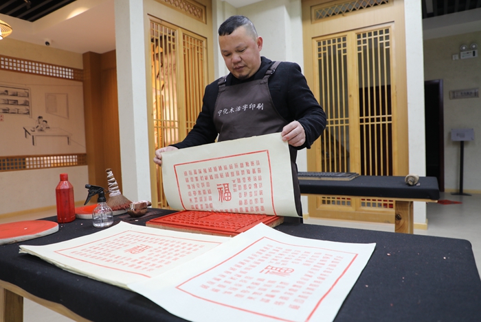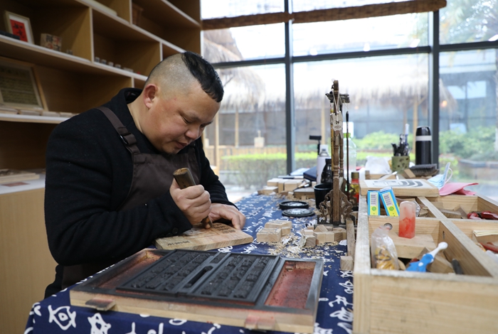“從大年初三開工以來,我每天除了接待進館的游客,還要根據客戶的需求刻制木活字……”2月6日,中國印刷博物館寧化分館內,寧化木活字印刷術傳承人邱恒勇正忙著刻字趕訂單。春節前夕,他接到的木活字訂單囊括了百“福”、古詩詞、百家姓、生日祝語、二十四節氣等內容。
