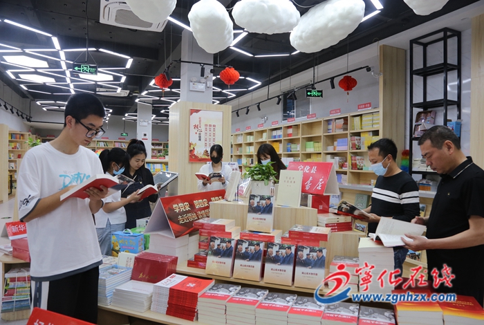走進寧化新華書店,書店的顯眼位置設有《閩山閩水物華新——習近平福建足跡》專題陳列,一本本新書排列整齊,吸引了許多讀者閱讀交流。