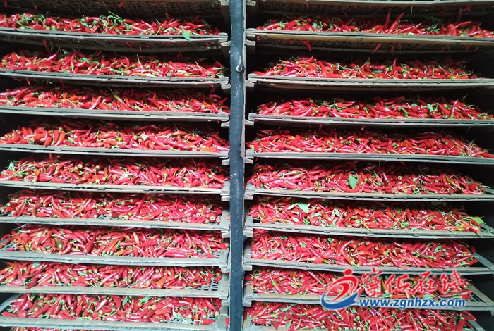 “今年種植的朝天椒畝產量大約在1500千克左右,烤干后畝產量達350千克以上,濕辣椒價格每千克6元、干辣椒每千克28元,收購商上門收購,僅3畝辣椒收入就有2.5萬元。”社福村村民雷五連子高興地算著賬。