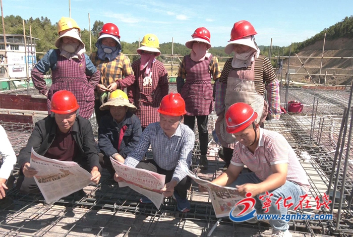 在省重點項目寧化智能制造產業園建設現場,寧化縣華僑經濟開發區的黨員志愿者向一線工人宣講黨的二十大精神。大家表示,要擼起袖子加油干,用實際行動踐行初心使命,全力保質保量地推進工程早日竣工,為寧化高質量發展作出應有貢獻。