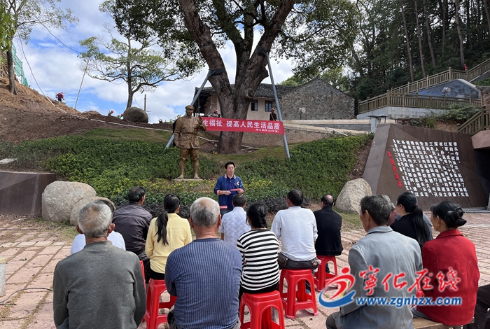 “1929年,朱德軍長在這棵大樟樹下傳播革命的火種,93年后的今天,我們在這里傳播黨的二十大精神……”11月8日,在淮土鎮鳳山村“朱德群眾大會演講舊址”旁,一場深入學習宣傳貫徹黨的二十大精神“板凳宣講”在這里進行。