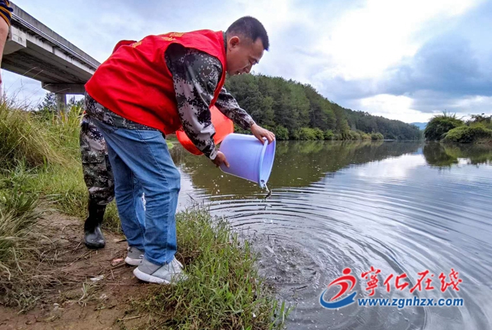 11月29日,在寧化縣石壁鎮陂下村高車河段,石壁鎮河長辦工作人員將一盆盆活蹦亂跳的魚苗有序投放,萬尾魚苗順著“人工滑梯”奔流入河。