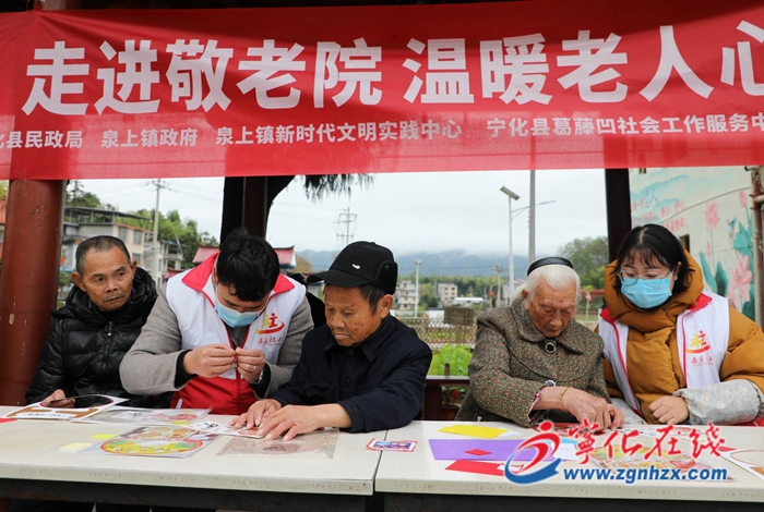 12月7日,寧化縣泉上鎮(zhèn)幸福家園內(nèi)洋溢著歡聲笑語,縣葛藤凹社會(huì)工作服務(wù)中心正組織老人玩拋圈套物的游戲,指導(dǎo)老人剪紙、拼貼年畫,讓老人感受著家一般的溫馨與幸福。