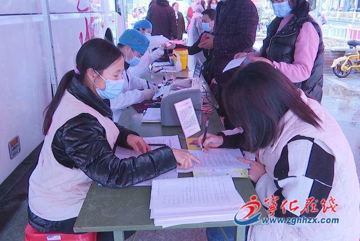 3月28日,在寧化無償獻血點,大家在工作人員的引導下填寫《無償獻血登記表》,逐項進行體檢征詢、血液初篩等工作。