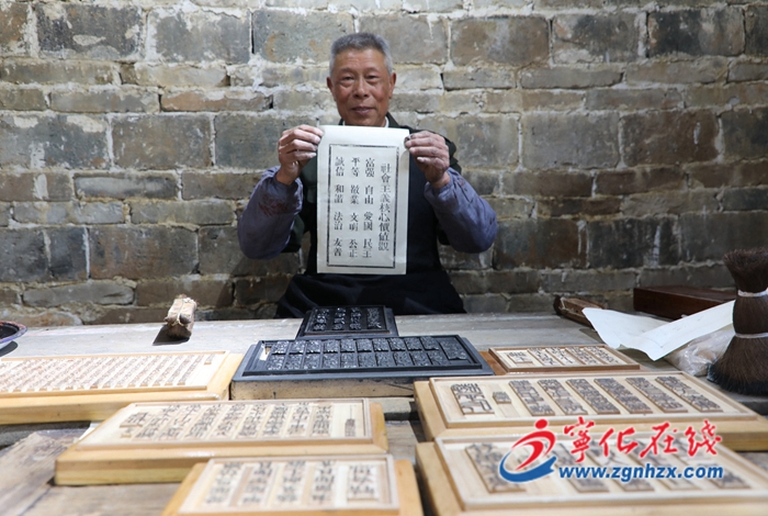 寧化木活字印刷術有著700多年歷史。解放前,謝應生的爺爺、父親經常利用木活字印刷家譜、私塾用書。謝應生從小耳濡目染木活字印刷術。剛開始,他看見父親謝仕貴能刻反字,覺得好奇,躍躍欲試。1966年,他初中畢業后,跟著父親學刻字,開始學揀字、歸字,后因“文革”動亂不得不中斷習藝生涯。“文革”結束后,他跟著父親繼續學習木活字印刷術,練習寫反字、刻字、排版、印刷,經常外出修譜。“‘文革’期間,父親停止刻印10多年,印刷工具也被大量銷毀。父親因印過家譜還被打成‘牛鬼蛇神’。”謝應生感慨道。