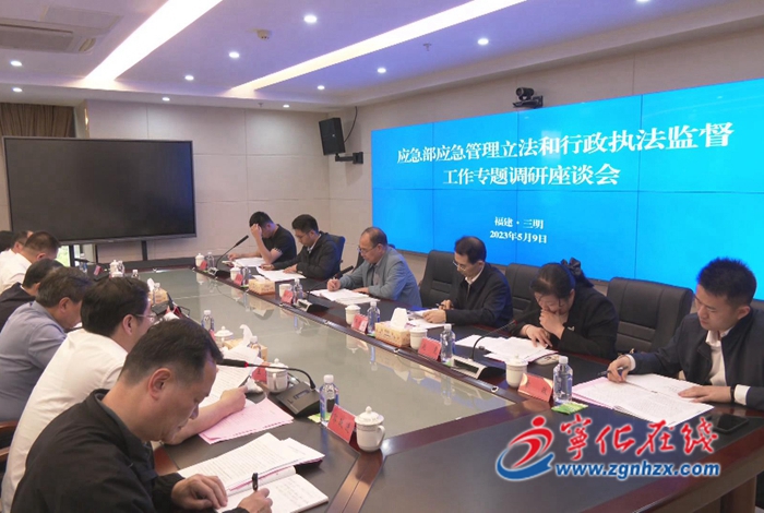 5月9日,應急管理部黨委委員、副部長徐加愛,應急管理部政策法規司司長王宛生,省應急廳黨委書記、廳長丘毅,市委常委、常務副市長楊興忠一行到寧化開展應急管理立法及行政執法監督工作專題調研,并召開座談會。縣領導王勝文、吳茂生等參加會議。