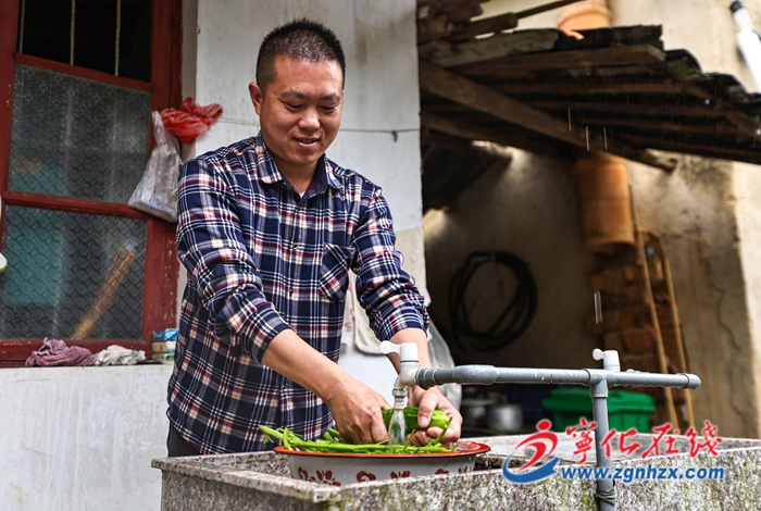 5月25日,臨近中午,大雨漸停。寧化縣泉上鎮謝新村村民王平站在自家門口洗菜池前,輕輕一擰水龍頭,自來水“嘩嘩”流淌,清澈干凈。??