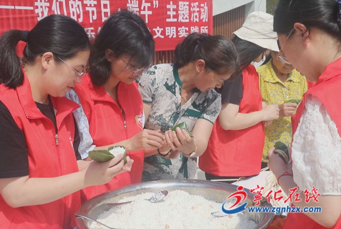 志愿者們一大早就將粽葉、糯米等材料準備就緒,大家歡聚一堂,你一言我一語,歡聲笑語不斷,在工作人員的現場演示和講解下,大家認真學習包粽子的手法和技巧,翠綠的棕葉在一雙雙巧手中上下翻飛,現場節日氣氛十分濃厚。志愿者們還將蒸熟的粽子送給周邊的孤寡老人,為他們帶去熱氣騰騰的粽子與節日的祝福。