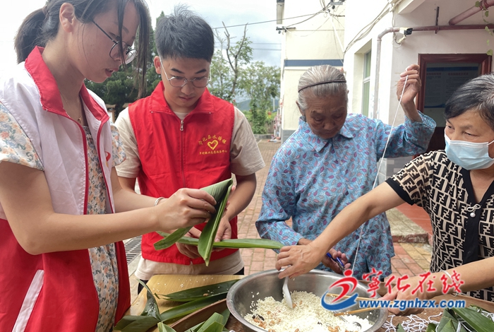 活動中,大家各自分工。 “巧手”們熟練示范,“新手”們認(rèn)真學(xué)習(xí),捋粽葉、做漏斗、填糯米、壓緊實(shí)、封口、扎捆,一道道工序有序進(jìn)行著,很快就包好了上百個棱角分明的香粽。志愿者們還邀請老人們進(jìn)行趣味套圈游戲,在場的老人們都獲得了小禮物。活動現(xiàn)場其樂融融,笑聲和粽香彌漫著整個敬老院,幸福的笑容洋溢在每個老人的臉上。