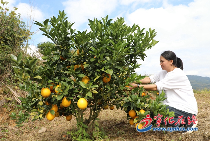 橙紅色的果實掛滿枝頭,渾圓飽滿,在陽光的照射下格外顯眼。陳家村臍橙種植基地毗臨蛟湖,植被好、陽光充足,臍橙口感好。2017年以來,該基地陸續種植贛南臍橙約千畝,并成立寧化百姓緣農業科技有限公司。公司秉承“生態優先,綠色發展”的理念,基地內設14條線路,將果園分為十多個區域,在保護好當地植被的基礎上,標準化發展臍橙產業,真正將果園建在森林里,讓臍橙長在樹林中。“預計今年產量達10萬公斤,帶動20余名周邊村民在家門口就業。”臍橙種植基地負責人駱梅芳說。