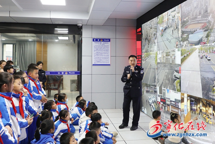 走進110指揮中心,同學們不禁被眼前“壯觀”的場景震撼,整面墻壁上布滿了視頻,實時監控全縣主城區各個路段的狀況。民警現場化身講解員,為大家介紹大屏幕上播放的全縣各個重點路段的動態信息。還為同學們講解了110接警的工作程序,如何與110接線工作人員溝通、交流以及如何做應急處理等。