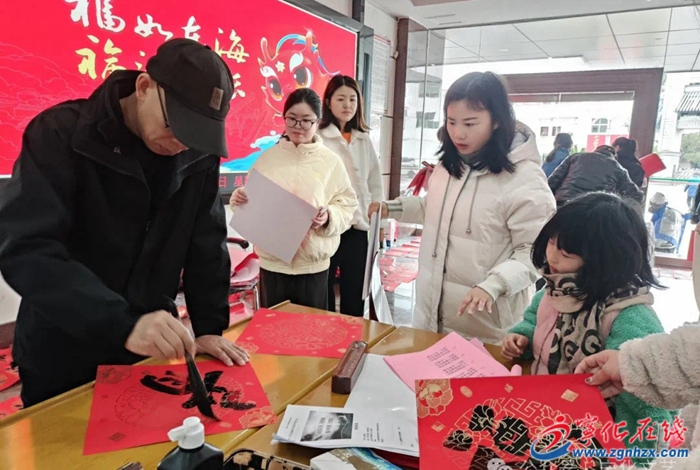 拿到自己心儀的春聯,大家贊不絕口,臉上洋溢著幸福的笑容。活動中,共送出200余副春聯,200余張福字。