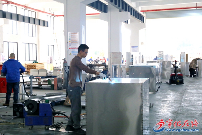 “我們公司于去年12月入駐華僑經濟開發區產業園,專業生產室內外不銹鋼消火栓箱、滅火器箱、消防工具柜等產品。目前試生產期間產值已達300萬元,全面投產后,可實現年銷售額6000萬元,實現稅收100萬元,新增就業崗位70多個。”公司負責人俞征賢介紹。