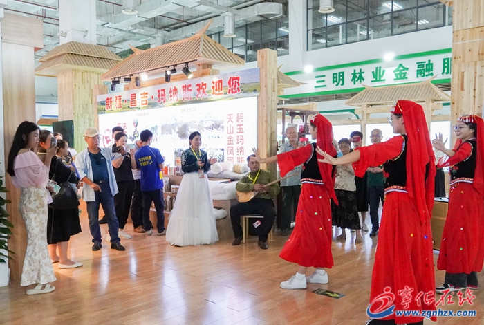 去年11月6日,第十八屆海峽兩岸(三明)林業博覽會暨投資貿易洽談會舉辦。走進瑪納斯縣展館,獨具異域風情的舞姿、琳瑯滿目的新疆特產,吸引了眾多人駐足。