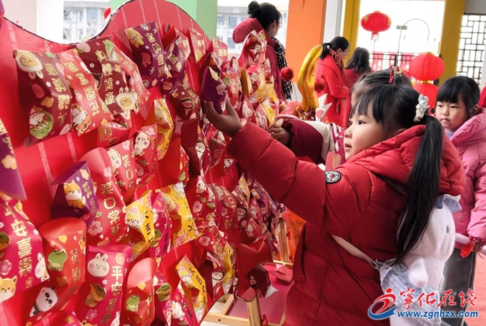 孩子們身穿喜慶服裝,稚嫩的小手在“龍鱗印記”印上屬于自己的祝福,在“納龍送福”藏著對新學期的祝愿。隨后參與書簽拓印、猜燈謎等各式各樣“中國味”傳統游戲,孩子們在充滿濃濃年味的游園活動中感受傳統文化習俗,在歡聲笑語中拉開新學期的帷幕。(通訊員 夏曉英)