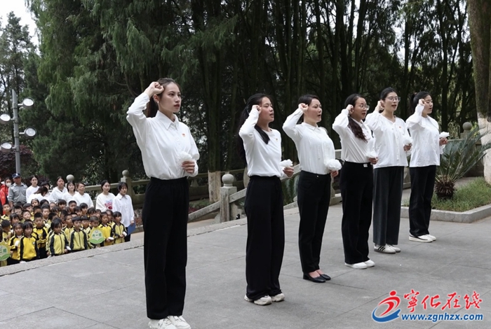 在革命烈士紀念碑前,幼兒代表講述寧化作為“擴紅支前”模范縣的紅色歷史,黨員教師在革命烈士紀念碑前重溫入黨誓詞。之后,大家一起為革命烈士敬獻鮮花,進一步表達對革命前輩的崇高敬意與沉重哀思。(通訊員 王芳逸)