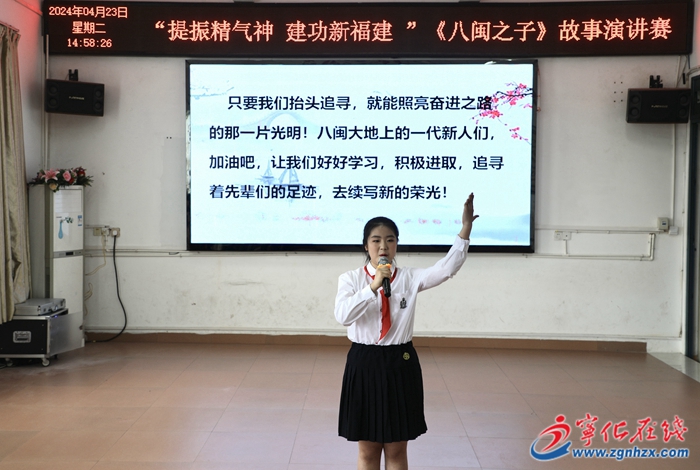 賽場上,選手逐一登臺,生動講述了殷承宗、余忠為、吳孟超、林則徐、鐘南山、鄧子基等“八閩之子”的感人故事,分享了他們以榜樣為鏡、爭做新時代好少年的心愿,贏得在場師生的陣陣掌聲。