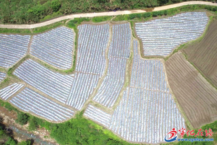 5月14日,在濟村鄉溪源瀑布大峽谷不遠處一片撂荒地和閑散土地上,翻土機來回穿梭,村民們則忙著整畦、種植仙草苗,一片覆蓋好銀黑膜的仙草種植基地已初具雛形。