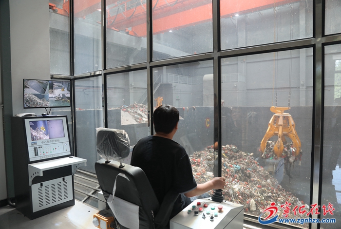 近日,走進寧化縣生活垃圾焚燒發電廠車間,只見巨大的鋼鐵爪掛在行車吊上,工作人員正一爪一爪將發酵完的垃圾抓進焚燒爐投料口,進行焚燒。這一幕幕,則通過監控視頻同步顯示在中心指揮平臺的大屏幕上。