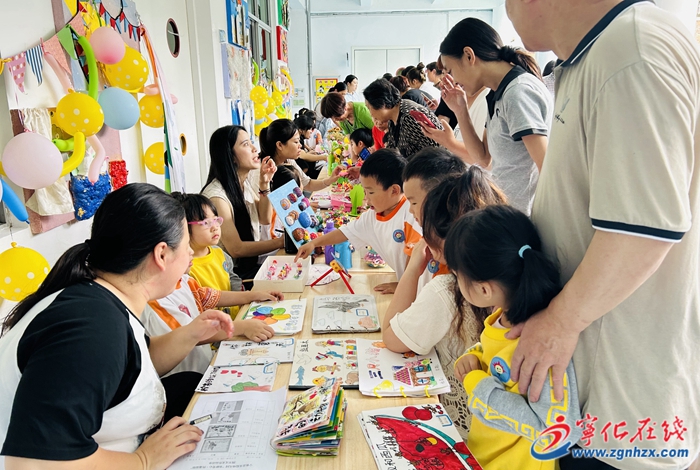 活動中,孩子們將自己制作的繪本、手工藝品等以班級為單位集中擺攤義賣。孩子們“各顯神通”、賣力推銷,有的繪聲繪色地向顧客介紹義賣品;有的主動出擊尋找顧客;有的用歌聲吸引顧客,義賣現場氣氛活躍。顧客們紛紛買下心儀的義賣品奉獻愛心。