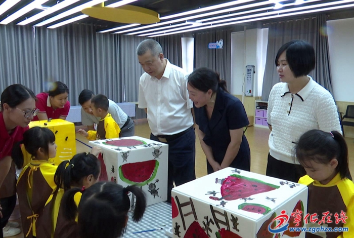 在第二實驗幼兒園,王勝文一行詳細(xì)了解學(xué)校的辦校情況、基礎(chǔ)設(shè)施和辦學(xué)特色,觀看了孩子們的書畫作品、手工作品展示,并為困難、留守兒童送上節(jié)日禮物和關(guān)懷。他指出,幼兒時期是人生最重要的啟蒙階段,廣大幼兒教育工作者要培養(yǎng)好孩子們的良好習(xí)慣,讓他們快樂學(xué)習(xí)、健康成長;要加強校園安全管理,全力做好校園周邊交通、食品、治安等方面安全管控,消除各類安全隱患,全力保障師生健康和校園安全。