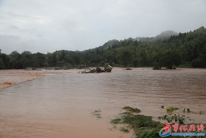 下午4時許,巖前村橫江組發生一起險情,一輛正在河道施工的鏟車連帶司機被困在突然暴漲的河水中間,湍急的水流持續上漲,司機隨時可能被水沖走,情況危急。
