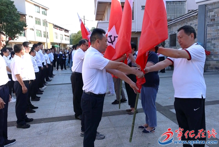 中央紅軍長征出發歷史步道寧化段項目是長征國家文化公園建設國家級項目,包含淮土段、曹坊段兩個部分,經歷五年的規劃建設,今天正式啟用。劉學禮、葉繼革、王盛澤、陳列平共同為“中央紅軍長征出發歷史步道寧化段”揭牌。革命烈士或開國將帥的后代共同為三明市黨員干部“重走長征路”活動授旗。11列隊伍代表接過授旗,從鳳凰山紅軍街出發徒步約5公里至仕邊路口,重走紅色之路,追尋革命先輩的足跡,身體力行感悟偉大長征精神,奮力走好新時代長征路。