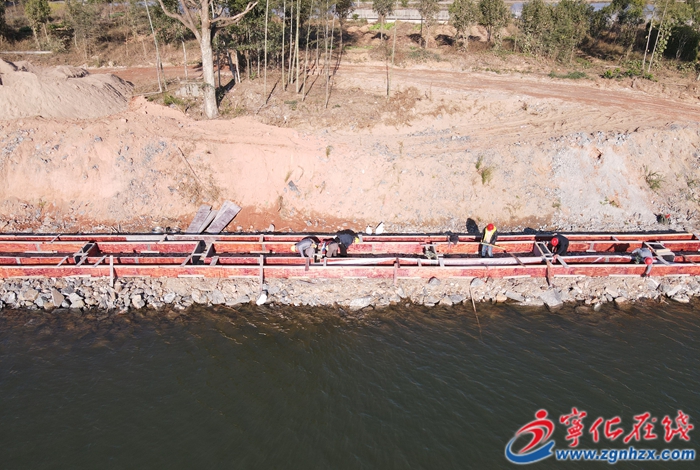 閩江干流防洪提升項目(三明段)建設,是國家150項重大水利工程之一,其中寧化縣橫鎖段總投資約1596萬元,起點為城南鎮橫鎖村村頭,終點為橫鎖村村尾,左岸新建護岸為2140余米,右岸新建護岸為1640余米,合計3790余米。